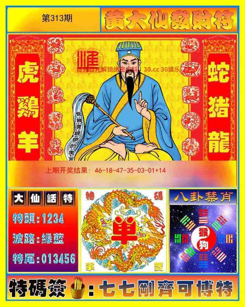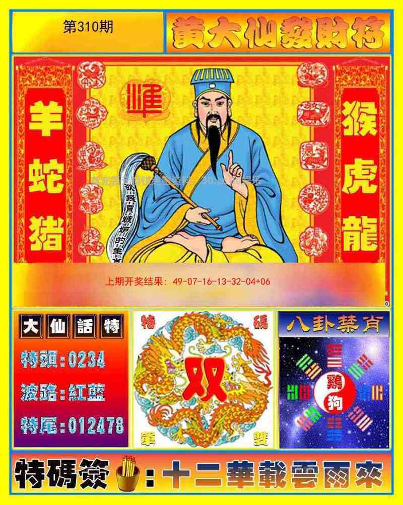 315期:黄大仙心水/简单好下注/台湾玄机诗/港台澳七肖/必中人物